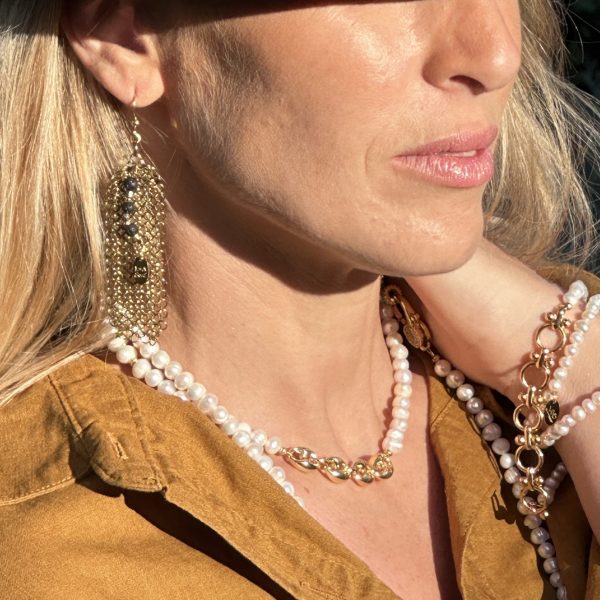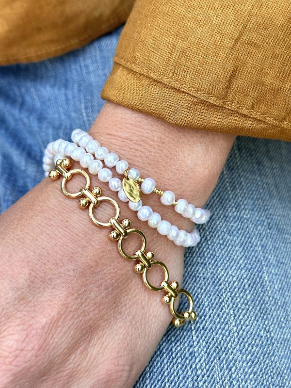 Bracelet triple tours, chaine perles culture.