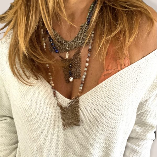 Collier Candale, cotte de mailles tissée de pierres semi-précieuses, turquoise africaine.