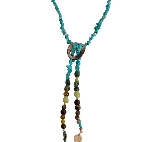 Laissez-vous séduire par ce collier cravate au design audacieux et raffiné, entièrement composé de chips de turquoise. Son tombé élégant apporte une touche bohème chic, idéale pour sublimer vos tenues avec caractère et authenticité.