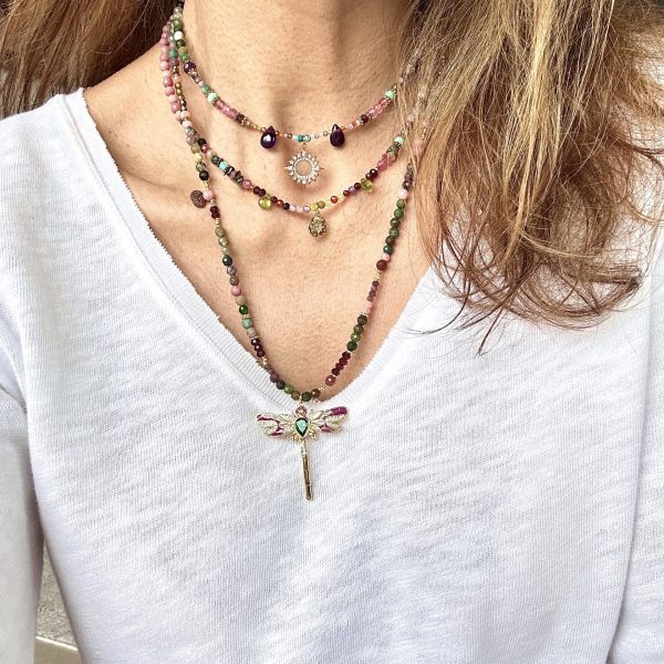 Collier Libellule mélange subtil de pierres fines semi précieuses.