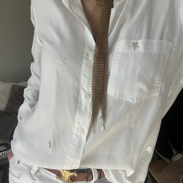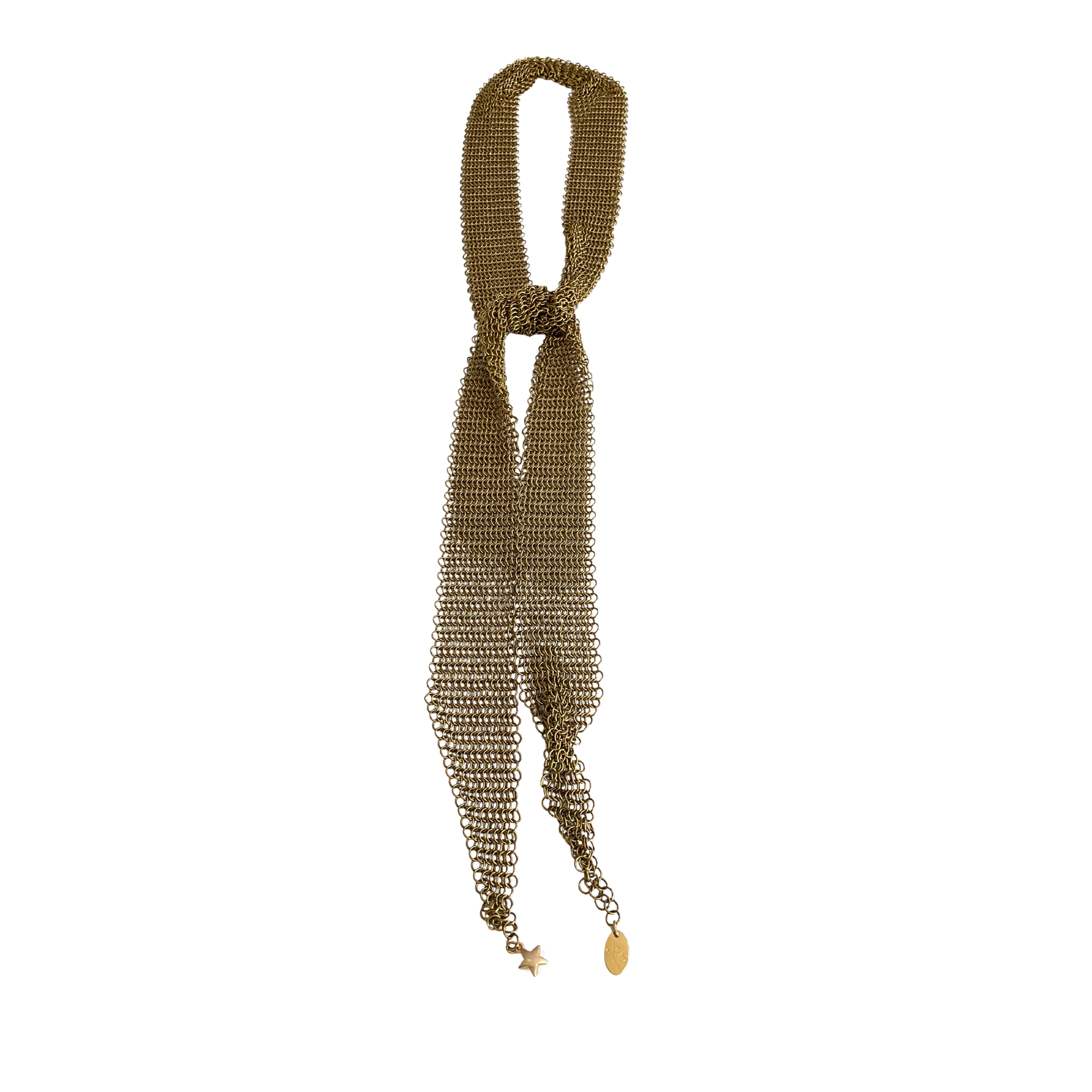 Le collier cravate Naya en cotte de mailles dorée ne se contente pas d’accessoiriser une tenue.