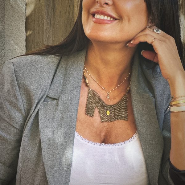 Ce collier en perles de jaspe beige avec cotte de maille est le choix parfait pour ceux qui recherchent un bijou sophistiqué alliant style intemporel originalité et matériaux de haute qualité.